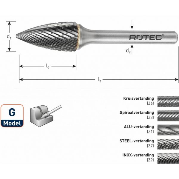 Rotec HM Stiftfrees boomvorm spits model G (RBG)