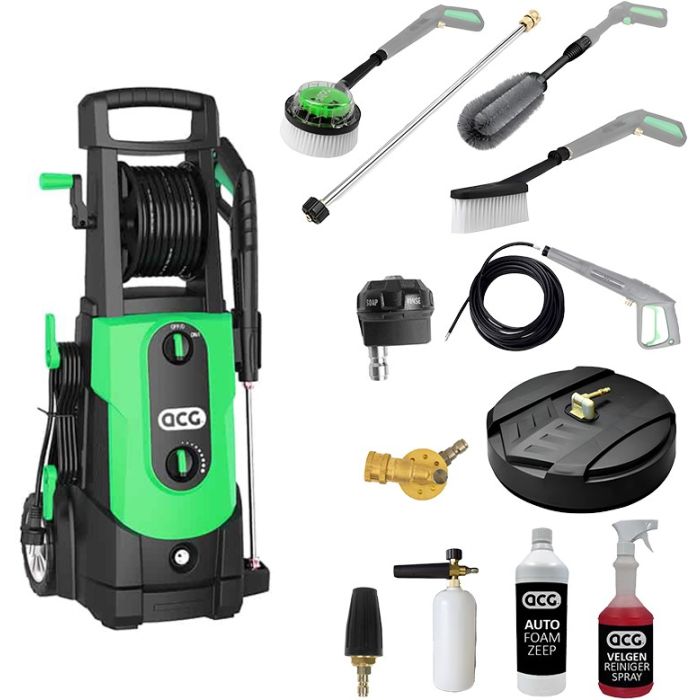 Zoekt u een hogedrukreiniger voor klussen of uw erf of kleine professionele werkzaamheden? Bent u van plan auto’s, tractoren of vrachtwagens te reinigen? Heeft u een groot terras schoon te maken? Of wilt u hardnekkig vuil op gevels verwijderen? Voor maandelijks/ wekelijks gebruik is de ACG 3200/225-COMFORTPRO hogedrukreiniger de perfecte uitkomst. Door de zware 3200 watt inductiemotor en grote pomp wordt een zeer krachtige waterstraal gerealiseerd. De machine is uitgerust met 10 meter hogedrukslang met staalinlage en in combinatie met de messing gelagerde spuitlans en 4 quick spray nozzles creëert u voor iedere klus een perfecte waterstraal. Daarnaast kunt u de zeep toevoer regelen met een aparte draaiknop. De hogedrukreiniger is van alle gemakken voorzien, zo rolt u de hogedrukslang gemakkelijk op op de speciale haspel en verrijdt u de machine gemakkelijk en comfortabel middels de grote transport wielen en het ergonomische handvat.