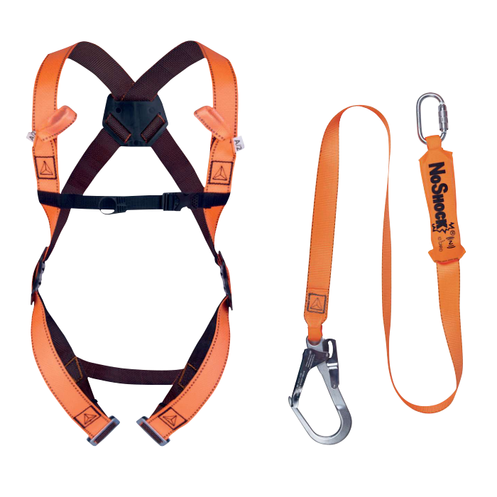 Eerstelijns valbeveiligingsset voor steigerbouwer. Set bestaande uit een harnas (HAR12) en 2 meter vallijn (AN203200ZD).