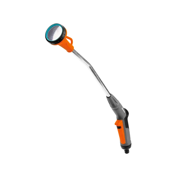 Met de Gardena broes met verlengstuk kunt u de tuin zacht en doelgericht besproeien. De waterafgifte kan worden afgesloten. Praktisch: besproeiing kan handmatig door de impulshendel in te knijpen of vast te zetten. Dat laatste voorkomt vermoeidheid van de hand. Met innovatieve vorstbeschermingstechnologie. De ring van zacht kunststof beschermt de broeskop tegen beschadiging. De broes met verlengstuk heeft een lengte van 60 cm. Dit is vooral handig bij grotere oppervlakken, zoals bijv. bloem- of groentebedden, omdat u de sproeistraal voor het midden van het bed kunt bedienen vanuit een staande positie langs de rand.