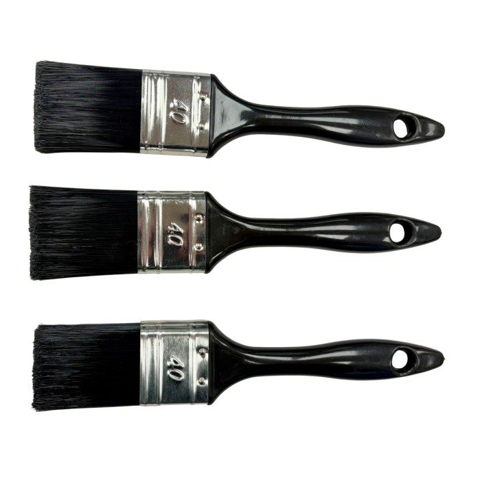 De set bevat 3 platte kwasten in maat 1,5inch/40mm en zijn voor universele toepassingen inzetbaar.