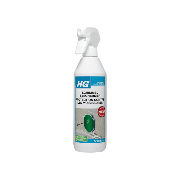 Schimmel ontstaat vaak in vochtige ruimtes, zoals de badkamer. Schimmel heeft voeding, vocht en tijd nodig om te groeien en voelt zich thuis vooral in vochtige ruimtes. Door een van de drie elementen weg te nemen, kan schimmel niet meer ontstaan. HG schimmelbeschermer sluit het oppervlak af, zodat schimmel geen voedingsbodem meer heeft, en doordat vocht ook geen kans krijgt om lang in het oppervlak te blijven.