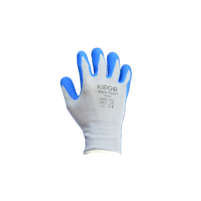 De Duro-Task is een fijn gebreide handschoen, voorzien van een latex coating op een drager van katoen, polyester en lycra. Hierdoor is de Duro-Task zeer slijtvast, maar behoudt hij ook zijn flexibiliteit. Dankzij het slijtvaste karakter heeft de werkhandschoen de meest hoog mogelijke scheurweerstand, waardoor het een betrouwbare handschoen is voor vakmensen die veel met stenen, tegels en grove bouwmaterialen werken. Hij gaat langer mee dan vergelijkbare werkhandschoenen en is daardoor de favoriet in de bouw.