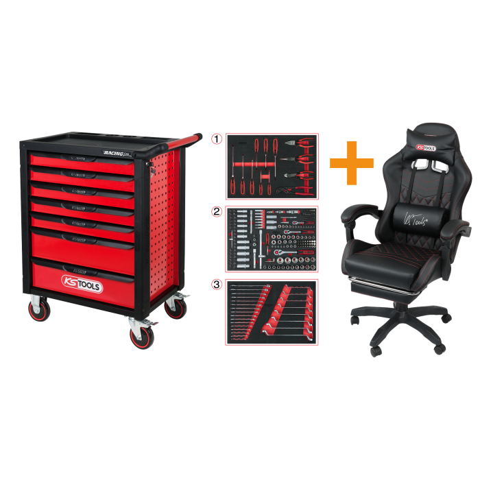 Omschrijving KS RACINGline Gereedschapswagen gevuld + gratis bureaustoel - 215 delig - 7 laden - 826.7215SB