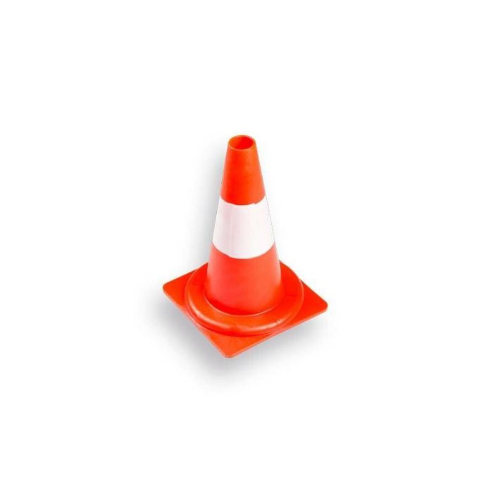 Pilon of Verkeerskegel LABORA van PE kunststof in hoogte 32 cm. Oranje kegel voorzien van een witte band.