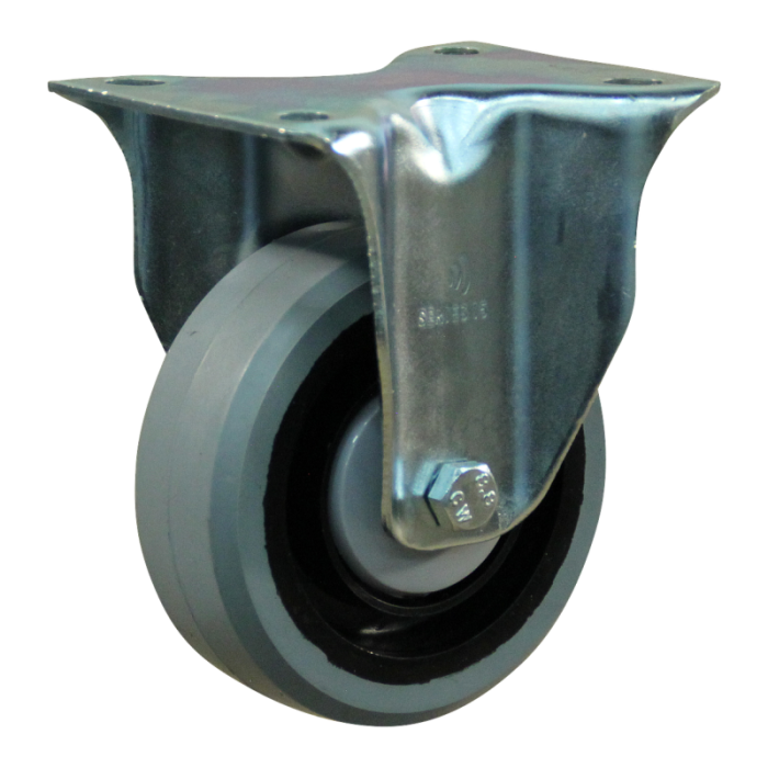 Omschrijving Novio serie 14-15 Bokwiel met plaatbevestiging - Ø100 mm - kogellager - rubber/TPE - 314.106.156.000