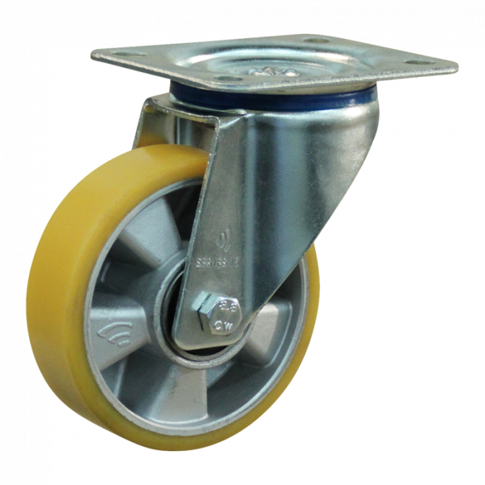 Omschrijving Novio serie 29-15 Zwenkwiel met plaatbevestiging - Ø125 mm - kogellager - PU/TPU - 229.126.156.042