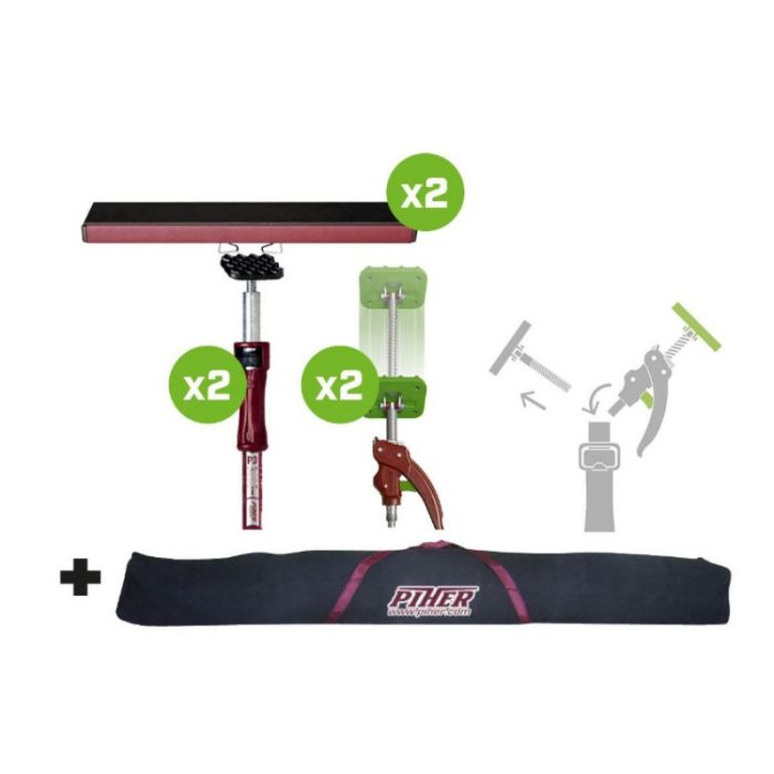 Super handige derde hand montage set. De set omvat twee derde hands steunen, twee demonteerbare steunzolen met anti-slip om bredere oppervlakken te ondersteunen, twee éénhandsbedieningen (super handig, hiermee kan je de steun met één hand bedienen waardoor je andere hand vrij blijft om het werkstuk vast te houden) ingepakt in een handige draagtas waar de volledige set in past. Deze set is multifunctioneel inzetbaar.