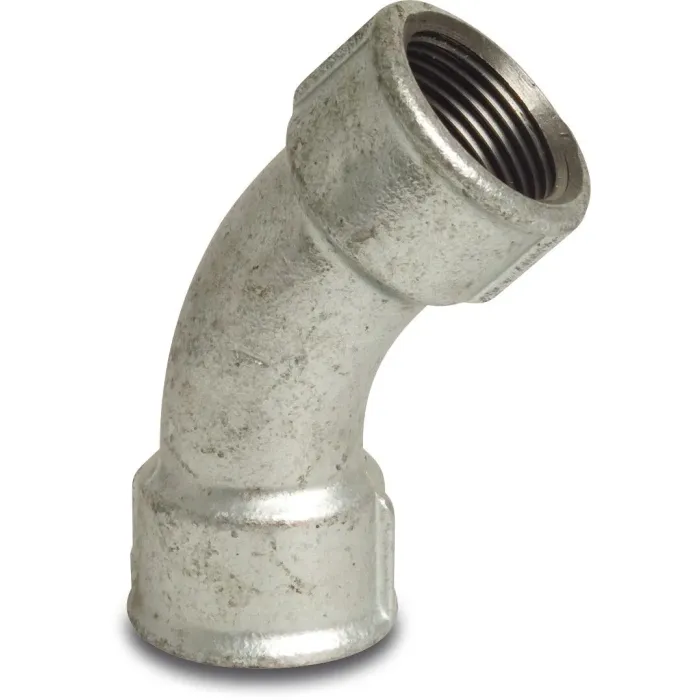 De Nr. 41 - Bocht 45° is een fitting met een treksterkte van <350N/mm2. De fitting heeft een binnendraad verbinding en een gegalvaniseerde oppervlaktebehandeling.