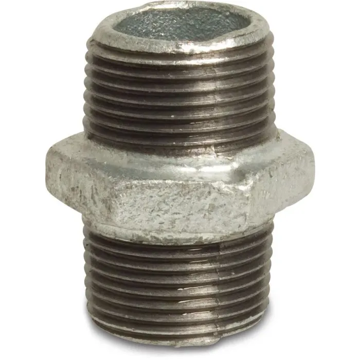 Omschrijving Profec Dubbele nippel nr. 280 - gietijzer gegalvaniseerd - 25 bar - 2x buitendraad