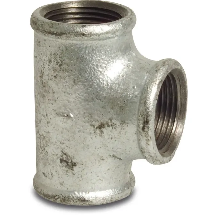 De Nr. 130 - T-stuk 90° is een fitting met een treksterkte van <350N/mm2. De fitting heeft een binnendraad verbinding en een gegalvaniseerde oppervlaktebehandeling.