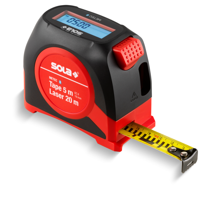 De METEC digitale rolbandmaat met laserafstandsmeter van SOLA combineert twee meetmethoden in één compact meetinstrument. Of het nu op de bouwplaats, in de interieurbouw is of voor professionele meettaken in de bouwsector gaat – de METEC levert nauwkeurige resultaten, bespaart u tijd en verhoogt de efficiëntie. Dit stevige meetinstrument combineert een digitale rolbandmaat van 5 meter (16 ft) met een geïntegreerde laserafstandsmeter met een bereik van max. 20 meter (65 ft). Dit maakt hem ideaal voor korte en lange afstanden waarbij zowel flexibiliteit als nauwkeurigheid zijn vereist.