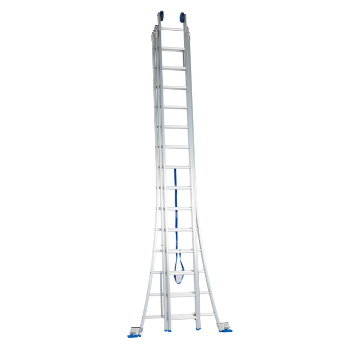 Solide professionele 3-delige aluminium bouwladder zijn ontwikkeld voor intensief gebruik en combineren een lichtgewicht constructie met hoge stabiliteit. Dankzij de hoogwaardige afwerking en duurzame materialen zijn ze veelzijdig inzetbaar perfect voor elke professionele werkplek.