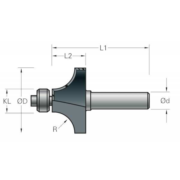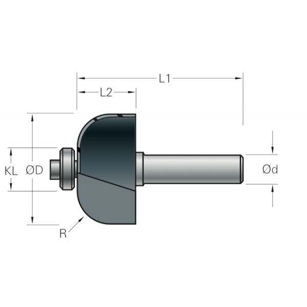 Stehle Hardmetalen Kwartfrees - afrondfrees met aanlooplager - Ø22,7 x 54 mm, R=5,0 mm - 58512098